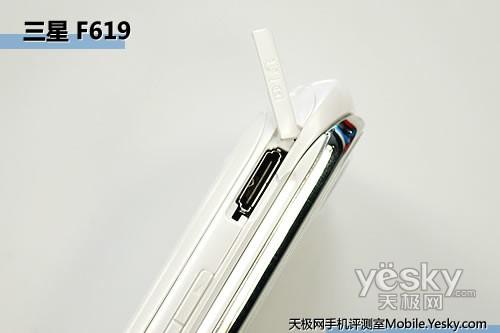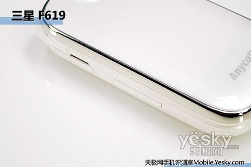 三星F619機身左側(cè)設(shè)計了I/O與音量控制鍵,三合一I/O接口采用了三星自主標準接口,同時需要撥接耳機與數(shù)據(jù)線,降低了融通性。機身右側(cè)僅設(shè)計了microSD卡槽,卡槽之上加蓋了防塵蓋,有效的保護了內(nèi)存卡不受塵土影響。