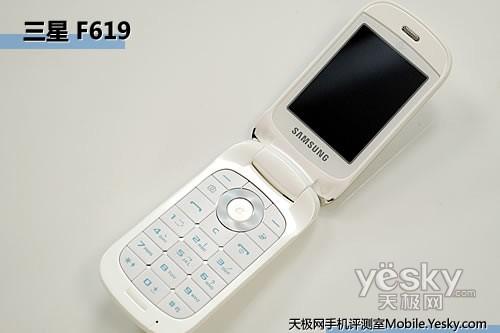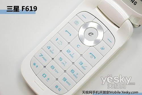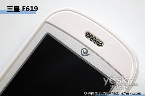 翻開三星F619的翻蓋,該機并沒有對手機內(nèi)側(cè)進行太多的修飾,一樣是白色的主旋律,2.4英寸TFT屏幕位于上翻蓋,聽筒上加蓋了金屬防塵網(wǎng),雖然聽筒孔徑有限,但通話聲音洪亮。一顆天翼的Logo標志著三星F619的定制地位。
