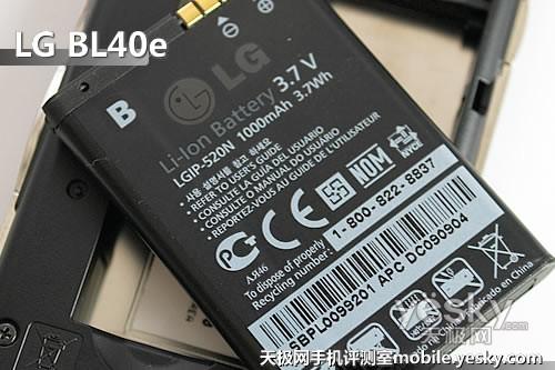 LG BL40e標(biāo)配一塊1000毫安的鋰離子電池,對于一個擁有4.0英寸1600萬色屏幕的手機(jī)來說,確實(shí)還不能算是強(qiáng)勁,而在實(shí)測中頻繁使用,一天多的時間就需要充電了,建議再為手機(jī)配置一塊電池,來滿足對于長時間待機(jī)的需要。