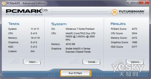 PCMark05 是考察筆記本綜合性能的測(cè)試軟件,在測(cè)試中我們采用了集顯模式,測(cè)試總成績(jī)?nèi)匀辉?000分以上,其中處理器和硬盤部分表現(xiàn)出色,內(nèi)存和顯示部分一定程度拉低了總成績(jī),不過在獨(dú)顯模式下,分?jǐn)?shù)會(huì)有較大程度提升。