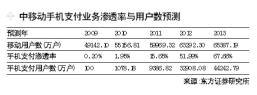 東方證券撰寫報告認(rèn)為這種應(yīng)用于特定的零售、電子商務(wù)和交通等領(lǐng)域的小額現(xiàn)場支付場景,具有快捷、便利、安全三大客戶價值。“目前,中移動已在10省范圍內(nèi)開展手機支付業(yè)務(wù)的試商用。調(diào)查顯示,市場對該業(yè)務(wù)有較強關(guān)注度,移動各營業(yè)廳中,對手機支付業(yè)務(wù)的問詢度日趨上升;而在已開通手機支付業(yè)務(wù),實現(xiàn)特約商戶購物和搭乘交通工具的城市中,用戶對該業(yè)務(wù)反響良好,對該業(yè)務(wù)發(fā)展前景看好。”