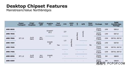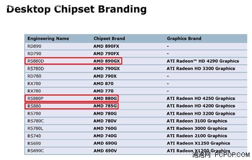 由上圖我們可以了解到:由于面向的處理器以及南橋不同所以它以不同頻率的形式出現(xiàn)了三個版本:785G代號為RS880,集成Radeon HD 4200 GPU;880G代號為RS880P,圖形設(shè)備ID為0x9715,集成Radeon HD 4250;890GX代號為RS880D,圖形設(shè)備ID為0x9714,集成Radeon HD4290。