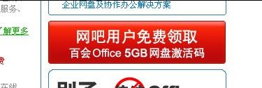 凡是網(wǎng)吧用戶,只要登錄百會首頁(),就可以看到免費領(lǐng)取百會Office 5G網(wǎng)盤激活碼的活動按鈕。