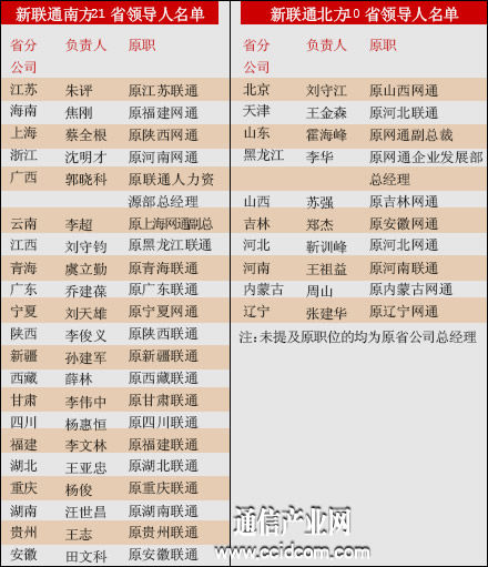 據(jù)了解,隨著各省級(jí)公司籌備小組的負(fù)責(zé)人的塵埃落定,動(dòng)作比較快的省份,如湖南、黑龍江、內(nèi)蒙古、廣東和湖北等省份地市公司籌備小組的負(fù)責(zé)人也已經(jīng)公布,相關(guān)的領(lǐng)導(dǎo)也已經(jīng)到位。