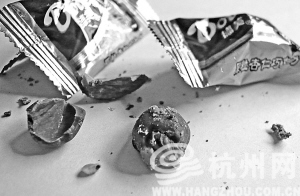 香滑的果仁巧克力,一向深受消費者歡迎,被許多人當(dāng)成饋贈親友的禮品。前幾天,陳女士就因參加婚禮分到幾盒德芙原粒杏仁巧克力。沒想到的是,一顆巧克力里竟然吃出了三條活生生的蟲子。