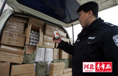 “他們稱自己是快郵公司的,幫一位貨主往石家莊郵局送貨。”民警李國(guó)宏說,他們檢查發(fā)現(xiàn),該車?yán)氖羌耐珖?guó)各地治療風(fēng)濕、關(guān)節(jié)炎、定喘等癥狀的保健藥品。通過直觀判斷,這些藥瓶質(zhì)地粗糙,疑似假藥,兩民警立即將情況上報(bào)大隊(duì)長(zhǎng)張紅慶。