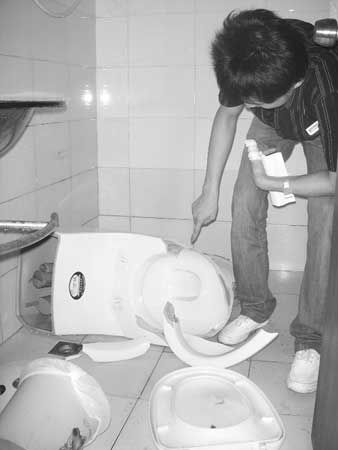 小伙說(shuō),和女友開好房間不久,他到衛(wèi)生間方便,剛坐上馬桶,意外出現(xiàn)了,“馬桶突然翻倒破碎,我身體也隨之失去控制,在本能的作用下,我左手迅速向后一按,結(jié)果屁股沒(méi)受傷,手卻被馬桶碎片劃得鮮血直流!碑(dāng)晚,小伙從醫(yī)院看傷回來(lái),拿著病歷找到大明路崢嶸招待所老板索賠!笆悄闶褂貌划(dāng)造成的,為什么別的房間馬桶沒(méi)壞?這醫(yī)藥費(fèi)我們不賠。”“你這馬桶一定有問(wèn)題,要不怎么會(huì)不結(jié)實(shí)?”雙方爭(zhēng)執(zhí)不休,小伙一氣之下?lián)艽?10。