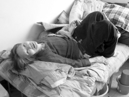 隨后記者走進敬老院的寢室,看到每個房間有四張床,其中一樓的一個房間門開著,在門外就能聞到一股刺鼻的臊臭味,房間內(nèi)有位老太雙腿蜷起,正躺在床上呻吟,床底下還有一泡尿。老太說,她行動不便,喊了半天也沒人攙她去廁所,結(jié)果尿床了。此時,一位老人走了進來,將屋里的一個暖瓶拿走了,見老太尿床了,對她一番責罵。記者又走進另一間屋子,一位老人正拿著笤帚清掃。老人表示,沒人打掃內(nèi)務(wù),只能自己打掃,不然就得挨罵。