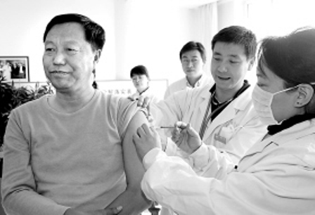 長春市自10月20日開始接種甲型流感疫苗以來,國家撥給長春市的13萬余人份疫苗只接種了72000余人份。第一批疫苗接種率不到60%,一個(gè)很重要的原因就是有的市民還心存顧慮。為了消除市民的顧慮,昨日上午,長春市市長崔杰等市領(lǐng)導(dǎo)接種了甲流疫苗,在場的媒體記者也進(jìn)行了接種。