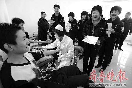 采訪中記者了解到,這45名同學(xué)都來自山東警察學(xué)院刑事科學(xué)技術(shù)系2007級本科三中隊和四中隊!25日,我看到齊魯晚報,才知道濟(jì)南第一例捐獻(xiàn)者是一名‘90后’的順菜工,同學(xué)們聽了都很受感動,我們都是‘80后’,不能輸給‘90后’呀!”四中隊的班長崔明波對記者說。