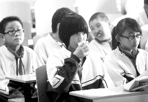 昨天下午2點(diǎn),朝陽區(qū)垂楊柳中學(xué)初中部,四間教室分別被臨時(shí)用做“候診室”、“接種室”、“處置室”和“觀察室”。初一年級(jí)的30名學(xué)生每人手里拿著一份經(jīng)家長簽名的“甲流疫苗接種知情同意書”率先被帶進(jìn)了候診室。