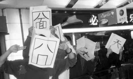 “可以看作是一種解壓方式,一種發(fā)泄吧,這些詞能代表現(xiàn)現(xiàn)代白領(lǐng)的各種心態(tài),例如‘囧’代表郁悶、‘烎’代表不服輸?shù)木竦鹊!盡K說(shuō),他會(huì)在廣州六個(gè)白領(lǐng)出現(xiàn)較多的地方進(jìn)行這樣的表演,還打算將這些表演做成視頻放到網(wǎng)上去。