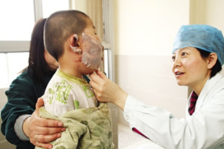 陽(yáng)陽(yáng)的主治醫(yī)師吳靜告訴記者,陽(yáng)陽(yáng)主要是面部和手部被燒傷,其中面部燒傷面積達(dá)到60%,基本都是深I(lǐng)I度,部分達(dá)到深I(lǐng)II度,燒傷情況比較嚴(yán)重,即使完全康復(fù),以后面部也將留下疤痕。(秋實(shí) 張凌飛)
