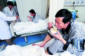 孫萍表示,病人的恢復(fù)進(jìn)程較快。6日,為了促進(jìn)消化,他們的食物以“湯水”等流質(zhì)為主;7日午飯時,醫(yī)生就開始為部分病人喂食湯面等半流質(zhì)食物。為了增加營養(yǎng),加快身體恢復(fù),醫(yī)生對他們實行“一日七餐制”。