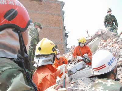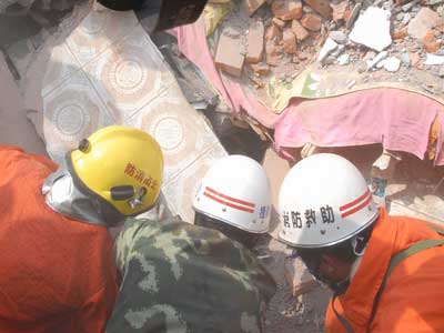 10時(shí)25分,消防官兵在對(duì)漢旺鎮(zhèn)災(zāi)區(qū)天池礦業(yè)公司家屬樓進(jìn)行搜索救援時(shí),突然聽(tīng)到廢墟中傳來(lái)一陣微弱的呼救聲。還有幸存者!馬上進(jìn)行救援!全力挽救幸存者的生命!隨著現(xiàn)場(chǎng)指揮員的一聲令下,參戰(zhàn)消防官兵在指揮員的嚴(yán)密組織下科學(xué)施救,充分發(fā)揮消防部隊(duì)的裝備優(yōu)勢(shì)和救援經(jīng)驗(yàn),迅速使用液壓剪、切割機(jī)迅速清除幸存者上方的鋼筋、鐵條等物,搬除身上埋壓的石板、水泥塊,為幸存者開(kāi)辟救生通道。