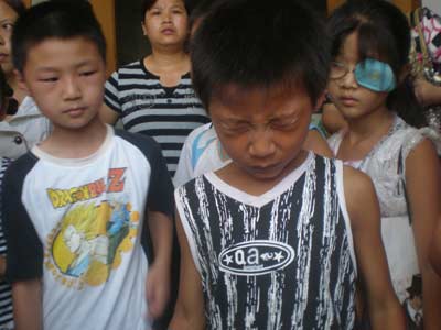 記者發(fā)現(xiàn),和小聰同班補(bǔ)習(xí)的還有12名小朋友,他們都被帶到昌大二附院眼科就診。這些小孩中有7名男生,其中小聰?shù)那樾巫顬閲?yán)重,6名小女孩的癥狀較輕。