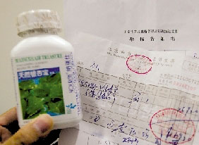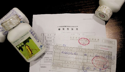7月9日,消費(fèi)者張先生投訴稱,他和朋友在位于遠(yuǎn)大路1號的金象大藥房購藥時,店員極力推薦了名為“納瑞仕番茄紅素膠囊”的“保健品”。起初,他和朋友并沒有動心,但聽到店員說可以“抗氧化、美容養(yǎng)顏”時,遂決定購買一盒回去試用。買回后,張先生卻發(fā)現(xiàn)這個番茄紅素膠囊根本不是保健品,而是一種普通食品。因?yàn)楫a(chǎn)品標(biāo)簽上標(biāo)的是食品衛(wèi)生許可證“溧衛(wèi)食字(2006)第0763號”。記者在張先生提供的發(fā)票上看到,在蓋著“北京金象大藥房醫(yī)藥連鎖有限責(zé)任公司”公章的北京市商業(yè)企業(yè)專用發(fā)票上,商品名稱一欄赫然填寫著“保健品(納瑞仕番茄紅素膠囊)”。