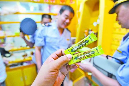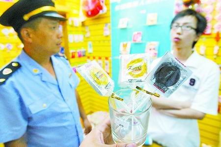 但面對詢問,該店店長稱老板在外地,相關(guān)手續(xù)可能還未辦理。最后,執(zhí)法人員將該店的安全套用品全部暫扣。(記者李 巖 實習(xí)生 齊葉帆文 記者許俊文 圖)