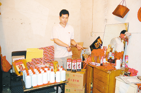 辦案民警告訴記者,從去年初開始,來(lái)自河南信陽(yáng)的袁某就和老鄉(xiāng)余某在一起制假販假,之后又雇姚某送貨。袁的父母拿收廢品當(dāng)幌子掩飾兒子制假販假,同時(shí)還可獲取一些廢舊酒瓶和包裝。他們買來(lái)廉價(jià)白酒后,加水勾兌成“茅臺(tái)”、“五糧液”等假名酒。每瓶假酒的成本不到10元。之后將這些假酒以每瓶50元至100元的價(jià)格,賣給西安的一些煙酒店。