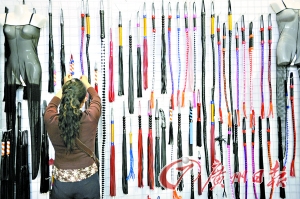 一位女觀眾忍不住研究起展覽的情趣用品。