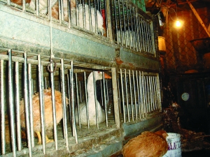 昨日記者在現(xiàn)場(chǎng)看到,籠中約有8只雞和1只鵝,發(fā)出“咯咯”的叫聲。