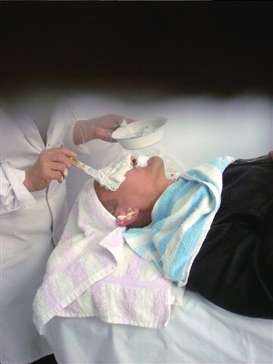 談話中,于振海聊到自己,他今年67歲,之前是北京一家醫(yī)院的醫(yī)生,退休后在此行醫(yī)。針刺做完后不久,于振海開始給李先生做面膜,做面膜的過程持續(xù)了半個(gè)小時(shí)。