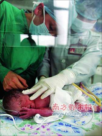 16:30,四個新生命被送至新生兒監(jiān)護室!艾F(xiàn)在情況還算穩(wěn)定,但老四有點窒息,這些小家伙要過兩三天之后才能穩(wěn)定下來!毙律鷥嚎浦魅伪R慶暉說。