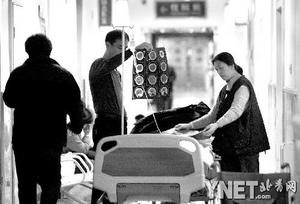 記者看到,急診科搶救室里里外外都躺著病人。病床上大多是滿臉憔悴的老年患者,他們被各種搶救儀器和親屬、子女們包圍著。而搶救室外的樓道里,還有四五位病人躺在臨時(shí)病床上輸液。此外,觀察室和監(jiān)護(hù)室外的樓道里也被加床患者擠滿了!皳尵仁摇⒂^察室、監(jiān)護(hù)室里連加床全都住滿了,”急診科值班大夫李南告訴記者,“我們實(shí)在沒(méi)辦法,只能在樓道里加床!笨墒橇硗庖粋(gè)問(wèn)題又出現(xiàn)了,呼吸機(jī)、監(jiān)護(hù)儀都不夠用,患者用平車也被占滿了,一些重病號(hào)只能先坐著輸液。據(jù)了解,這些不得不在醫(yī)院里過(guò)年的患者主要是心腦血管病人和呼吸系統(tǒng)病人。