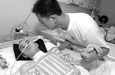 弟弟在京打工時被打成重傷,千里之外讀大學(xué)的哥哥赴京照看。昨天(7日),民航總醫(yī)院神經(jīng)外科病房內(nèi),哥哥承諾出賣畢業(yè)后5年的勞動力為弟弟籌措醫(yī)藥費。