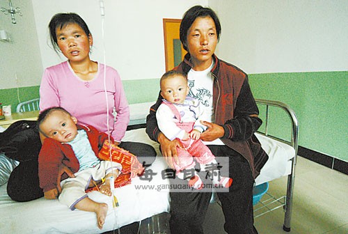 來(lái)自岷縣的雙胞胎患兒。記者陳若夢(mèng)攝