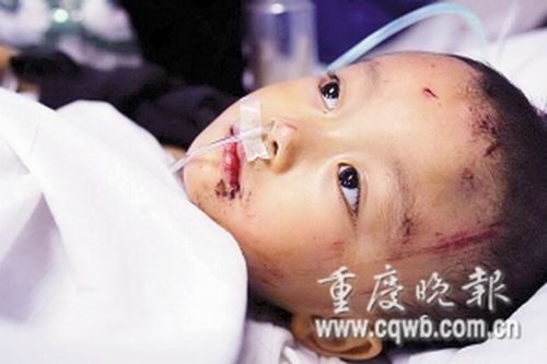 昨天(10月29日),記者在重慶市第六人民醫(yī)院見(jiàn)到了病床上這個(gè)叫孫浩的3歲男孩!拔也煌,我想媽媽了。”孫浩說(shuō)到這里流下了眼淚。據(jù)了解,從孩子出事到現(xiàn)在,其父母一直沒(méi)有出現(xiàn),一直是干媽守在醫(yī)院。