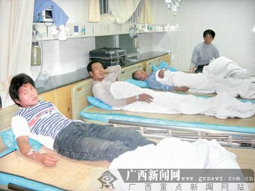 小楊告訴記者,出現中毒癥狀后,林場負責人就立即通知了120急救中心。晚上7時30分左右,有中毒癥狀的工友就陸續(xù)被送到南寧市第二人民醫(yī)院了!拔沂峭砩8時許來到醫(yī)院的”。