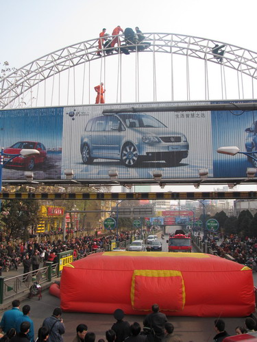 考慮到該男子的人身安全,飯店老板當(dāng)場(chǎng)答應(yīng)拿出100塊錢(qián)對(duì)其補(bǔ)償,然而廣告架上的男子突然改變了注意,提出了一個(gè)荒唐的理由,聲稱要市長(zhǎng)到場(chǎng)自己才肯下來(lái)。時(shí)間一秒一秒的過(guò)去了,僵持還在繼續(xù),所有的勸說(shuō)都是徒勞,此時(shí)廣告架下邊的的救生氣墊也出現(xiàn)了意外,原來(lái),向氣墊里充氣的充氣機(jī)因長(zhǎng)時(shí)間使用,機(jī)器的油料快用完了,于是現(xiàn)場(chǎng)指揮員立即對(duì)充氣機(jī)進(jìn)行了更換。由于現(xiàn)場(chǎng)圍觀群眾太多,指揮員馬上與大隊(duì)取得了聯(lián)系請(qǐng)求消防二中隊(duì)前來(lái)增援。