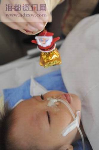 “寶貝,你醒醒!”母親向女士除了抹眼淚外,每天都要呼喚女兒幾百次,并給女兒按摩手腳。圣誕節(jié)那天,向女士買了個(gè)小小圣誕老人,掛在女兒的病床頭,平時(shí)的一些玩具也堆在女兒身邊。向女士說,孩子醒來的第一眼,要讓她看見美的東西。