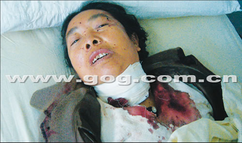 昨日下午,記者在貴醫(yī)附院看到了這名躺在病床上的老人。老人大約50多歲年紀(jì),女性,衣著較為整潔。接診護(hù)士告訴記者,老人剛被送到醫(yī)院的時(shí)候可以說話,但是問及家里的情況時(shí),老人卻拒不回答。同時(shí),護(hù)士還表示從老人的只言片語中聽到,老人說咽喉部位插的水果刀是她自己捅的。