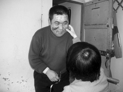 家住龍?zhí)秴^(qū)鄭州路山前西區(qū)的居民鐘寶成今年44歲,妻子15年前因遭遇車禍造成高位截癱,家中非常貧困。4年前,他不幸患上牛皮癬,因無錢醫(yī)治,一直到嚴(yán)重了,才找人用祖?zhèn)髅胤结t(yī)治,結(jié)果出現(xiàn)過敏和感染,整個(gè)臉的皮膚全部被破壞掉了。
