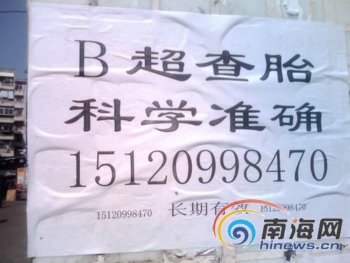 街頭廣告:某醫(yī)院醫(yī)生稱查胎百分之百準(zhǔn)確