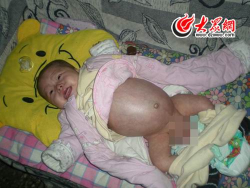 李鑫告訴記者,他家共有六口人,除了他與妻子,上有55歲高齡的父母,下有20歲妹妹在濰坊職業(yè)技術(shù)學(xué)院上學(xué),一家老小靠擺地攤賣早點為生,雖然艱苦,倒也幸福。天有不測風(fēng)云,2008年7月底,剛出生28天的兒子被查出先天性腎病綜合征,對整個家來說,簡直天塌了下來,他們四處求醫(yī),但治療效果一直不很明顯,兒子的病情一天天惡化,一家人卻束手無策。