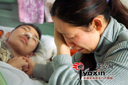 “洋洋,要堅(jiān)強(qiáng),只要挺住一切都會(huì)好起來(lái)……”2月16日,在新疆維吾爾自治區(qū)人民醫(yī)院,聽(tīng)著兒子范洋洋痛苦的呻吟聲,焦玉麗拉著他的手一遍遍地給他鼓勵(lì)。