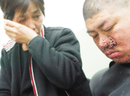 1995年的一天,兒子一覺醒來發(fā)現(xiàn)鼻子上長了一串紅色疙瘩,本以為是上火就擦了些藥膏,但沒想到紅疙瘩反而越長越多,并且一長就是14年。周小宇曾去醫(yī)院看過病,被診斷為血管瘤,但聽說治療費至少要幾萬元,小宇趕忙拉著父母“逃”回了家。