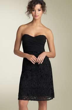 JS時(shí)裝店的玫瑰暗花紋抹胸小黑裙