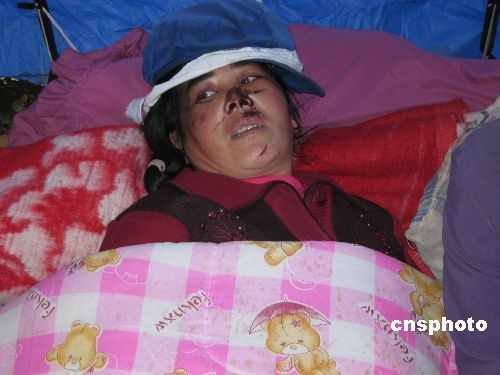 圖為村民王光蘭在被埋五個多小時被村干部救出,被醫(yī)護(hù)人員治療后在救災(zāi)帳篷中休息。中新社發(fā) 劉子倩 攝