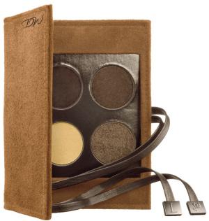 駝色小牛皮質感的盒子之外是真皮質感的系帶,莫非這是一款奢華精致的錢夾?不,實際上它的真實面目是一款棕色加巧克力色系的四色眼影組合!對深淺分明的四個顏色輕松地搭配組合,打造自然的時尚日妝很適合,精致的晚妝也沒問題