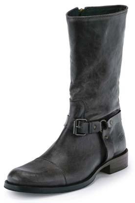 Tips:在靴子搭配上有時候全黑并不是非常亮眼的打扮,只能說是最保險的方式。其實如果換條懷舊色的牛仔褲可以更突出你的靴子.另外如果你的褲腳比較小可以塞進(jìn)鞋子,拉出一點在靴口制造出比較蓬松隨意的感覺。如果你的褲腳比較大那么就卷在外面比叫舒適,卷起的邊可以稍微寬一點這樣會給褲子和靴子之間留白.隨意而強(qiáng)調(diào)靴子。
