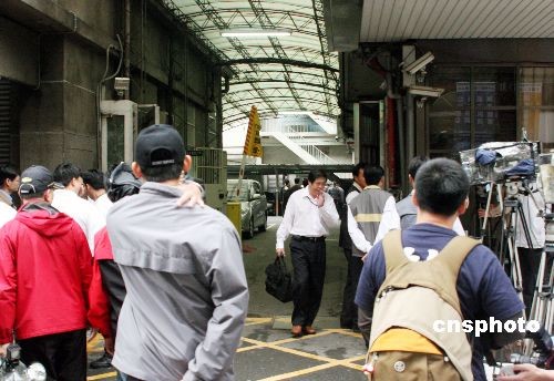 圖為陳水扁進(jìn)入特偵組后,大批警方在現(xiàn)場(chǎng)戒備,而陳水扁的車(chē)隊(duì)則由側(cè)門(mén)進(jìn)入特偵組。