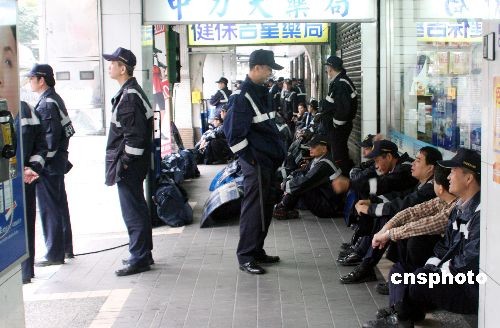 圖為特偵組附近每一條街道都有大批警力分層戒備,包括騎樓下也有警察在等候應對異常情況。中新社發(fā) 黃少華 攝