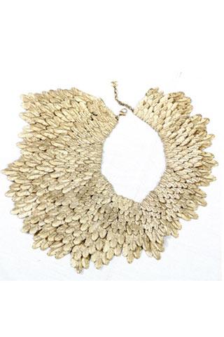 香奈兒專屬羽飾Desrues工坊似乎能把所有的不可能變?yōu)榭赡埽拖裰袊糯哪芄で山衬馨腰S金做成葉脈清晰的樹葉一樣,他們用黃金打造出了羽毛質(zhì)感清晰的頸飾并依照大小層層排列,在塑造肌理質(zhì)感的同時(shí)讓其栩栩如生起來。