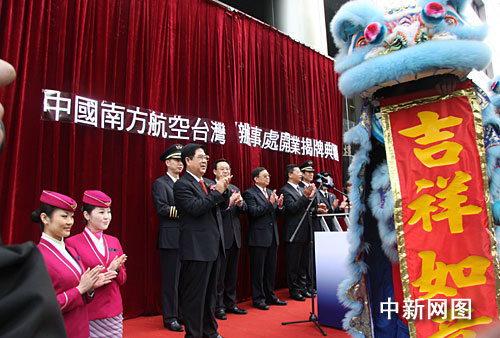 1月15日,大陸南方航空公司在臺北正式成立辦事處,成為首家在臺灣掛牌運營的大陸企業(yè)。圖為開業(yè)揭幕儀式典禮。中新社記者 陳立宇 攝
