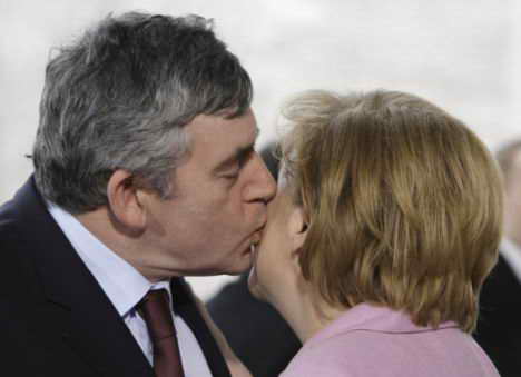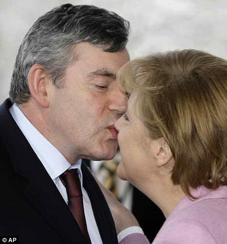 布朗親吻默克爾時(shí)笨手笨腳 誤撞鼻子(組圖)(2)
