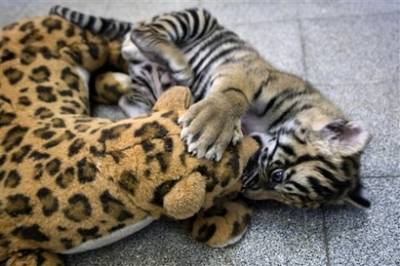 據(jù)臺(tái)灣東森新聞網(wǎng)報(bào)道,活蹦亂跳的小老虎不但會(huì)和小孩一起玩,還會(huì)把玩具豹玩得不亦樂(lè)乎。不過(guò),可別看它一副自得其樂(lè)的樣子,其實(shí)小老虎有著非?蓱z的身世,因?yàn)槌錾攀斓乃筒恍业乇蛔约旱挠H生母親拋棄。